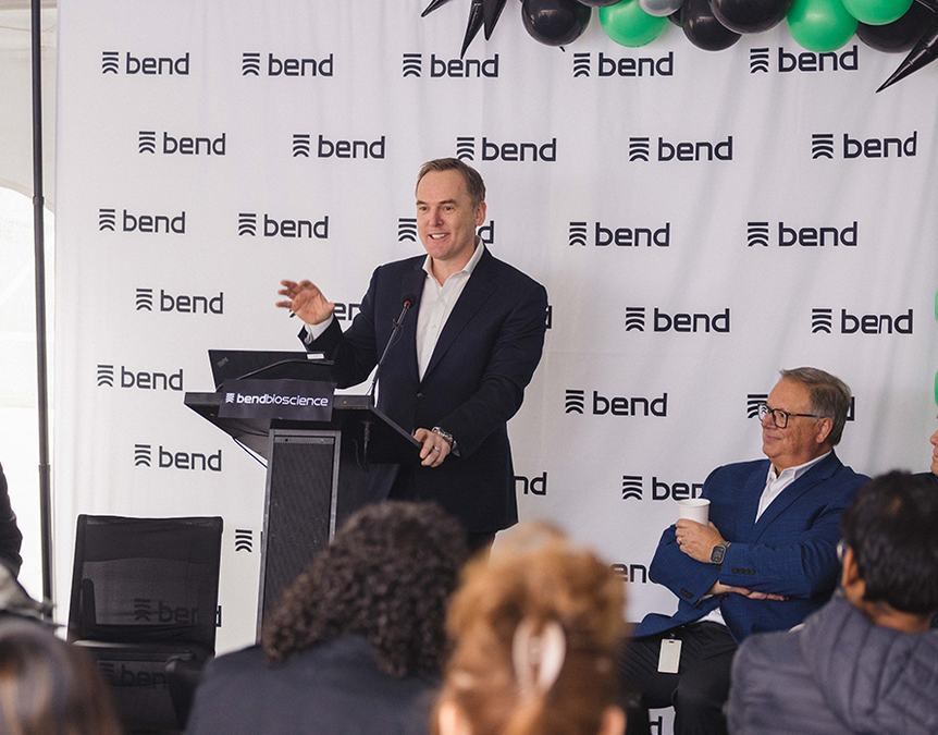 Owen Murray, CEO of Bend Bioscience, speaks at a groundbreaking ceremony for the expansion of the company's Gainesville facility. Photo submitted by the Greater Hall Chamber of Commerce